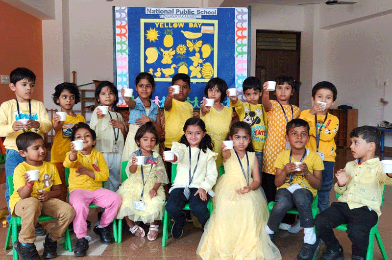 At National Public School, Singanayakanahalli, hands-on learning is an integral part of the Montessori curriculum, and Yellow Day, celebrated on 17/01/2025, Friday, was a vibrant example of this approach. Our Montessori students came dressed in cheerful shades of yellow, each bringing along a yellow object or toy to showcase and speak about, boosting their confidence and communication skills.