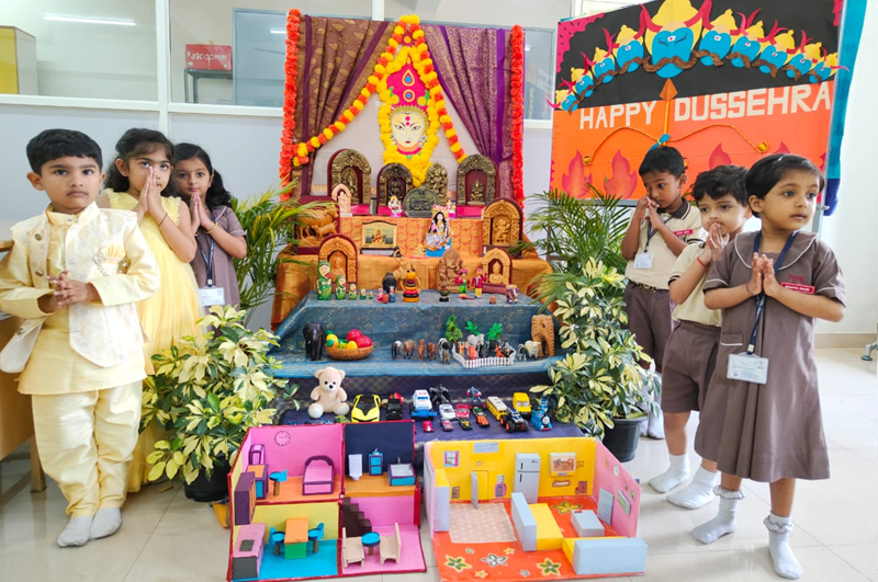As the school resonates with the joyous sounds of celebration, it becomes a manifestation of our collective devotion and commitment to fostering an environment of learning and growth. May this Dussehra bring not only festive cheer but also illuminate the path ahead, guiding our students and staff towards a year of academic excellence and personal development.