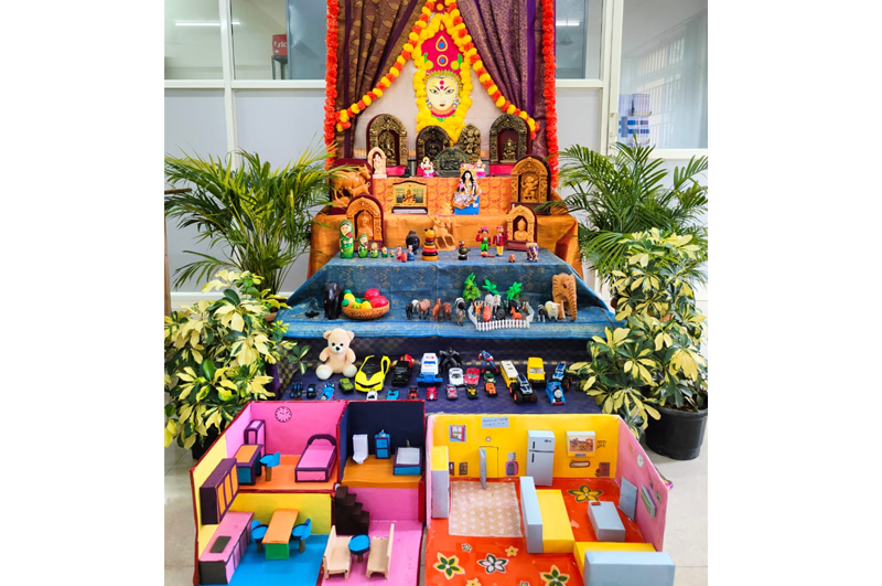 The preparations for this holy celebration is a sight to behold. Students eagerly contributed their favourite dols to arrange 'GOLLU' in the school premises. The act of cleaning the school campus symbolized the removal of negativity and impurities from our lives, making room for positivity and enlightenment.